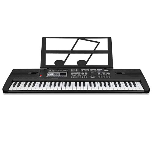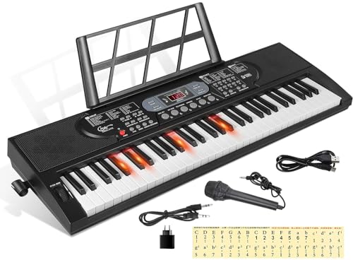 Hricane 61 knappar piano-tangentbord med mikrofon notställ & pianonoter elektroniska digitala lysande knappar kibord, gåva för nybörjare pojkar flickor vuxna män kvinnor, HEP-669W