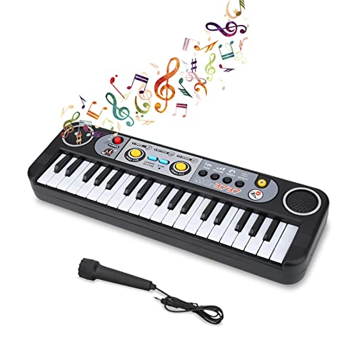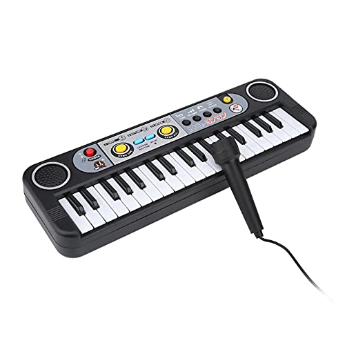 Elektroniskt tangentbord med 37 tangenter, multifunktionellt elektroniskt piano med mikrofon, piano för barn, pianotangentbord för nybörjare, pojkar, flickor, svart