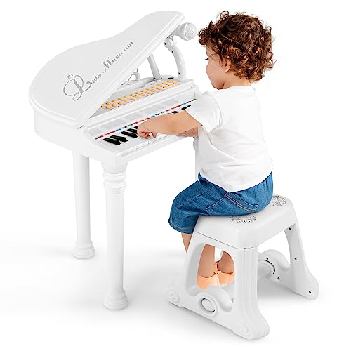 GOPLUS 31 knappar för barn tangentbord med pall, pianotangentbord med mikrofon, LED-ljus och MP3-gränssnitt, E-piano med 3 lärolägen, 22 demos, 4 rytmer, inspelning och uppspelning för barn (vit)