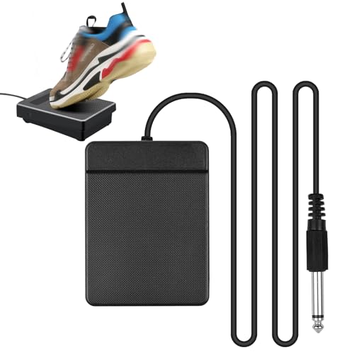 SHAEVLE Sustain-pedal för tangentbord digitalt piano MIDI och synthesizer med polaritetsbrytare 6,35 mm (1/4 tum) med 63 tums kabelingångskontakt