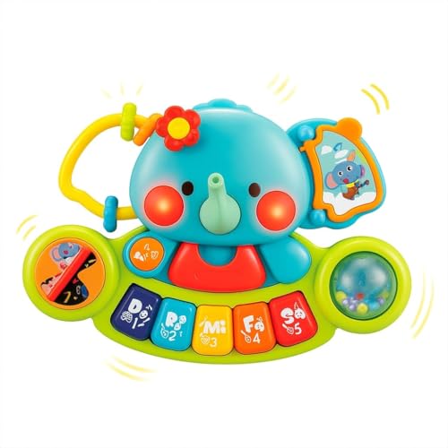 Hola - Piano för barn - med riktiga lampor och ljud för musikinstrument - elefantspel med tangentbord och 7 aktiviteter - sensorisk och pedagogisk leksak - babygåva +6 månader