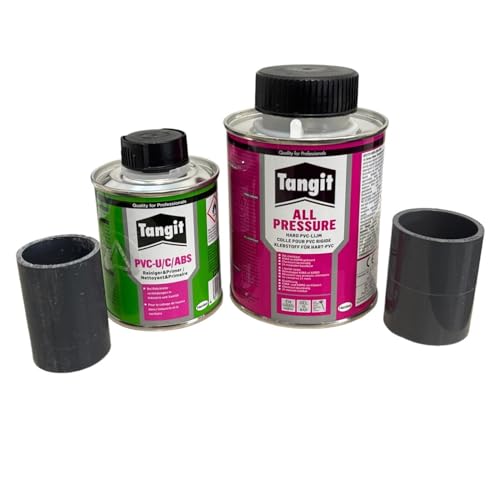 Tangit PVC-set, allt trycklim 250 ml och rengöringsmedel 125 ml pensel-speciallim för anslutning och montering av PVC-U-rör/poolkonstruktion, dammkonstruktion, takrännmontering