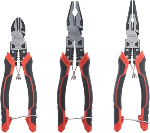 HOUSERAN 3-delad Tångsats - Professionell Verktygssats med 21 cm Nålnästång, 21 cm Linemans Tång & 19 cm Diagonala Skärare - Fjäderbelastad med Säkerhetslås