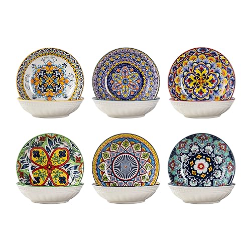 HENXFEN LEAD snacksskålar keramik, 14 cm tapasfat set doppskålar porslin för sås, soja, sushi, mellanmål. Färgglad, förpackning med 6 - bohemisk stil