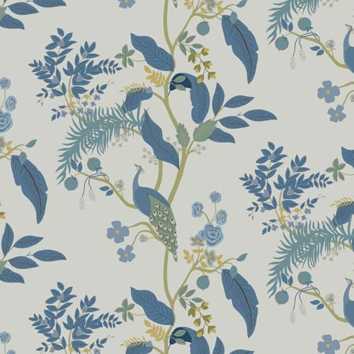 Yomshi Självhäftande tapet, blå, blommor och fåglar, 41 x 300 cm, vattentät möbelfolie, självhäftande och avtagbar vinyl, dekorativ film för vardagsrum och sovrum