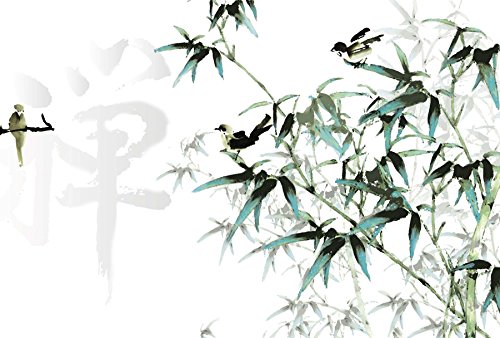 Scenolia Tapet textil kinesisk målning grenar och fåglar 3 x 2,70 m - väggdekoration Trompe Eye effekt - panoramautlopp affisch XXL - enkel installation och HD-kvalitet