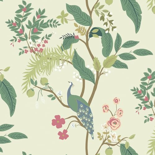 ReWallpaper 44.5cm×12m Självhäftande Tapeter Grönt Guld Självhäftande Folie Möbelmönster Vintage Tapet Självhäftande Blommor Med Fåglar Foto Tapet Vardagsrum För Vägg Tapet Badrum Vattentät