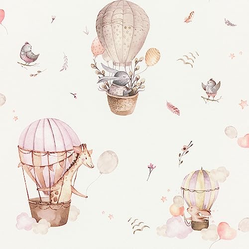 Rasch Tapet 300529 – ljus fibertapet med barnmotiv i rosa; barnrumstapeter – 10,05 m 0,53 m (L x B):