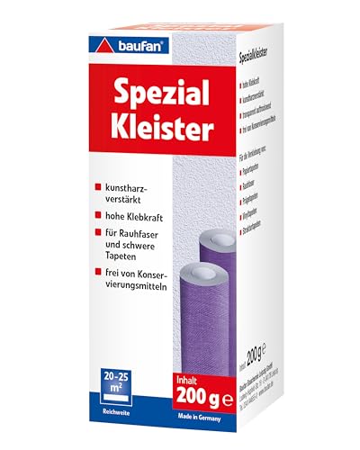 Baufan Speciallim – 200 g I harts-förstärkt tapetklister med hög vidhäftningsförmåga för grovfiber och tunga tapeter I transparent lim