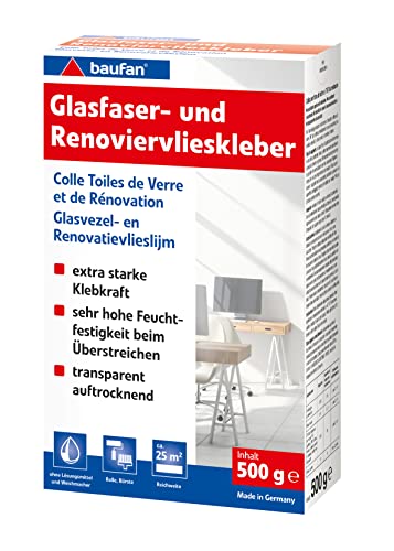 Baufan Glasfiber och renoveringsfleece lim 500 g I starkt tapetklister för tunga väggbeläggningar och grovfiber I utan lösningsmedel I för rulle och borste