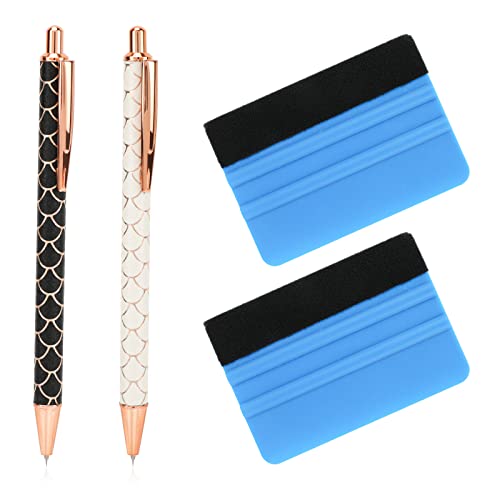 MWOOT 2 st rensningsverktyg för vinyl, svartvit stiftpenna rensningsverktygssats, luftfrigörande penna tapetverktyg, infällbar precisionsnålpenna med 2 filtskrapor för att ta bort bubblor