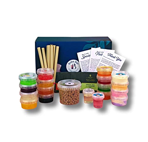 Boba Bar London | Premium mixat bubbelte gör-det-själv-kit | blandade tesmaker med bobas, gelé och tapioka | serverar 8 | perfekt för fester, jul, födelsedagar, gåvor ..