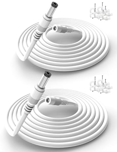 Lonnky 10-Meter 12V Förlängningssladd, Kompatibel med CCTV TAPO Kamera, DVR, TV Box, 12V Strömförsörjning, 2,1mm x 5,5mm Hane-till-Hona Kabel, 2-Pack, Vit