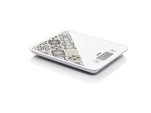 Salter Boston köksvåg – 5 kg kapacitet, Add & Weigh Tara-funktion, Aquatronic, lättläst upplyst display, 1 g steg, smal design, ml/fl.oz/lb, Ice White Shimmer