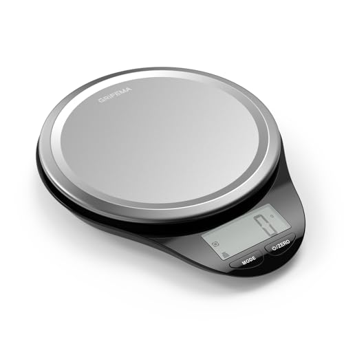GRIFEMA GA2007 digital köksvåg, 5 kg/11 lb noggrannhet 1g/0,1 oz, bakgrundsbelyst LCD-display, tara-funktion, flytande omvandling, rostfritt stålplattform, silver