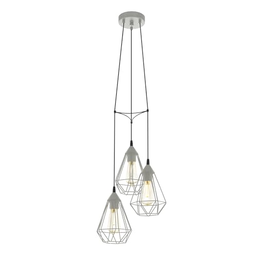 EGLO Tarbes Hänglampa med 3 ljuskällor, pendellampa att hänga över matbord, hängande taklampa av grå metall, matrumslampa med E27-sockel, 31 cm i diameter