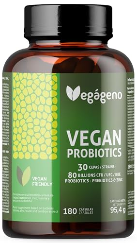 Vegageno Probiotics 180 kapslar - odlingskomplex 30 stammar & 80 miljarder CFU - Probiotika tarmrengöring - tarmbakterier Probiotika för frisk tarmflora. Probiotics Kaplsen med Prebiotika