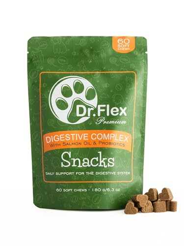 Dr. Flex Probiotika Komplex för Hundar – 60 Tuggtabletter med Kolostrum, Öljäst, Laxolja & Cikoriarot – För Hälsosam Matsmältning, Tarmflora & Immunförsvar