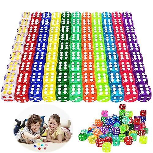 Giugio tärningar, 100 stycken färger tärningsset, 12 mm transparent kub set, färgglada tärningar, tärningsspel, bordsspel, polyester tärningsset för barn vuxna fest hem festspel tillbehör