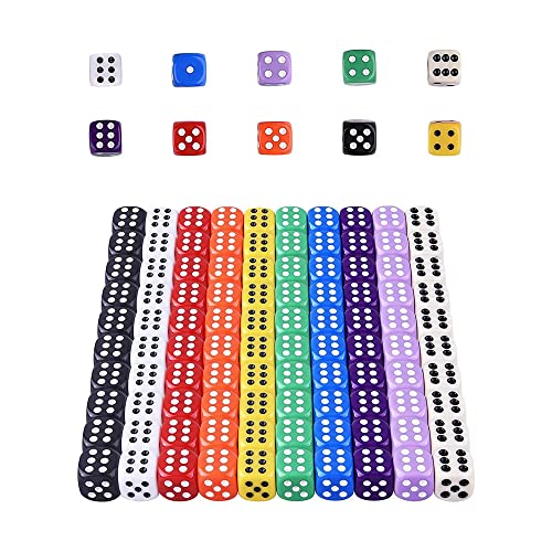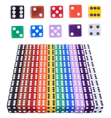 HUAZIZ Set med 100 färgglada tärningar 6 ansikten Dice Game D6 tärningar 16 mm för brädspel, multispel, matematiska spel för barn set med flera sidor