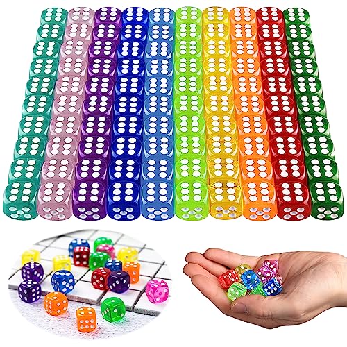 ZMDMAH 6 sidor tärningsset, 100 stycken dice set 16 mm sexsidig kub genomskinliga färger akryl polyester tärningar speltärningar bordsspel för spel och fest