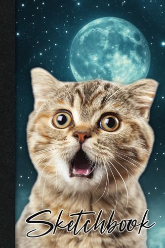 Cat Moon Sketchbook 6 x 9: Cute Funny, Mystic, Tarsier Moon Notebook for Drawing or doodling 112 Pages with Cat Moon bottom border, includes belong page. Great for Sketching or journal.