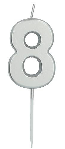 Folat 24138 Tårta ljus nummer/siffror 8 silver – 5 cm födelsedagsljus för födelsedag, födelsedagsdekoration, för barnfester, bröllop, företagsfester, årsdagar