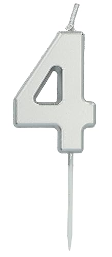 Folat 24134 Tårta ljus nummer/siffror 4 silver – 5 cm födelsedagsljus för födelsedag, födelsedagsdekoration, för barnfester, bröllop, företagsfester, årsdagar