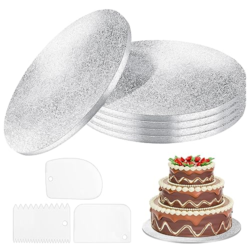 Towviy Cake Board rund bas 5 st runda tårtbrädor kartongunderlägg tårta bas 30 cm (12 tum) för bröllop födelsedagsfest tårtdekoration med 3 skrapor