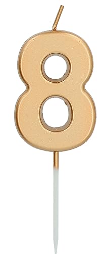 Folat 24148 Tårta ljus nummer/siffror 8 guld – 5 cm födelsedagsljus för födelsedag, födelsedagsdekoration, för barnfester, bröllop, företagsfester, årsdagar