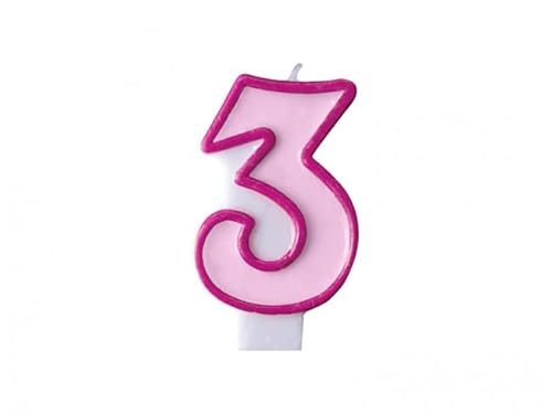 Nummer 3 formade ljus rosa för tårta, ljus 7 cm babyvax för flickor kvinnor, födelsedag, årsdag, fest, pensionering, kön avslöjar
