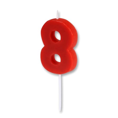 PARENCE – Födelsedagsljus nr 8 – Rött – 8,3 cm – Tårta, fest, födelsedag, ceremonidekoration – Ljus nr