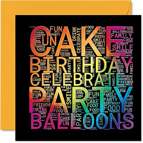 Roliga födelsedagskort för män och kvinnor – ord moln tårta fira fest – grattis på födelsedagskort för mamma pappa syster bror dotter farbror moster 145 mm x 145 mm födelsedag gratulationskort