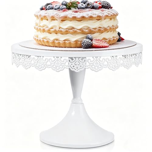 JUJOYBD Tårtfat med fot, tårtställ vintage, kakfat av metall kakstativ, tårtställ för tårtor tårta dessert, dekoration för bröllop födelsedag jul, vit, D 25 cm
