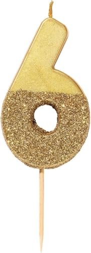 Talking Tables Gold nummer 6 födelsedagsljus med glitter – tårtdekoration för barn, vuxna, 16., 60. Födelsedagsfest, jubileum, milstolsålder