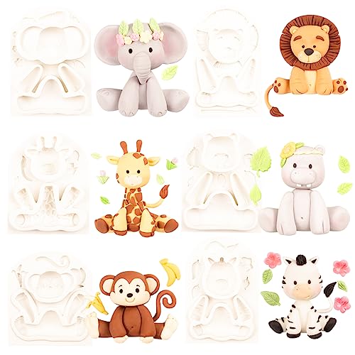 Djungeldjur silikonform safari djur formar för tårtdekoration tårtdekoration barn födelsedag elefant lejon giraff flodhäst apa zebra set om 6