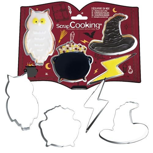 ScrapCooking - 4 häxstansare - kakskärare i rostfritt stål - små tårtformar - tillbehör för bakverk födelsedag deco - 2071