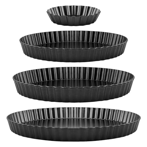 CHUIFAI 4 stycken tårtformar med lyftbottensats, 10 cm, 22 cm, 26 cm, 30 cm, med lyftgolv, quiche bakform, non-stick-belagd, tårtform, rund för tårta, quiche, fruktkaka