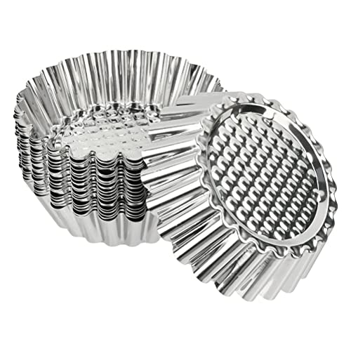 20 st små tårtformar, non-stick-beläggning, pajformar, quiche form, rund pajform, tartlettformar i rostfritt stål för mini pajer