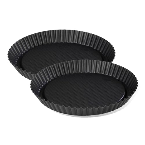 Zenker 9914450 set med 2 tårtformar 30 cm, pajform, pajform, 2 bakplåtsformar för spillpajer, stål, svart, 30 x 30 x 3 cm