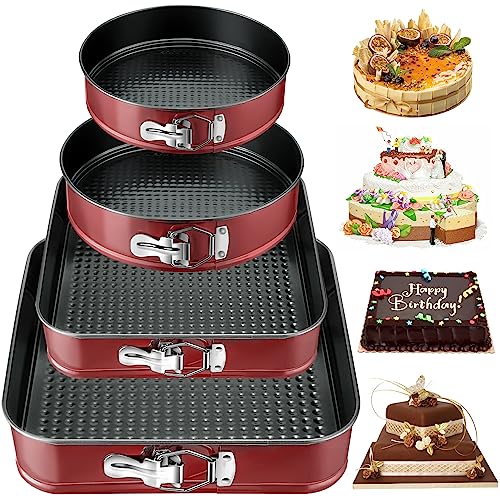 LEADSTAR Gångjärnsform, 4 tum Mini Missade tårtformar rund non-stick form missa mini tårta ostform för att göra pizzakakor, 4 stycken