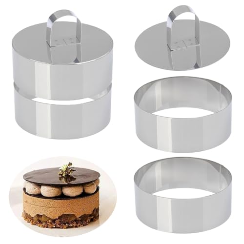 4 stycken 10 cm små tårtringar och 2 stycken rostfritt stål täcker bakverk set, dessertringar små kakringar set, dessertringar tårtring set tatar former tårtring små dekorationer tårtformar