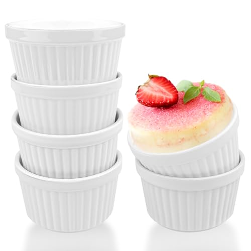 Comzantor 6 st bakformar, kakform, kakform, ugnsbrickor, mini cocotte, dessertskålar, lock och såsskålar i keramik, små tårtformar, vit