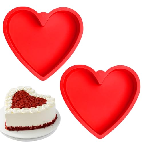 2 st hjärtformade tårtformar i silikon, 25,4 & 17 cm, kärlekshjärtform, kakform i silikon, återanvändbar, nonstick-ostkakform, för årsdagstårta, tårta, limpa, brownie, paj, flan, bröd – röd