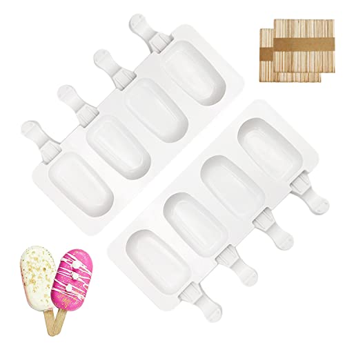XPOOP 2 st kakformar i silikonform, form för minitårta, glasspinne, glassform, gör-det-själv-glasspinne, glassform, silikonglassform, tårtformar med 100 träpinnar