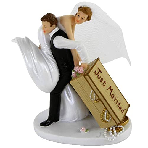 Tårttillbehör: Dekorativ Brudpar Figur för Bröllopstårta - Just Married Med Väska Toppers