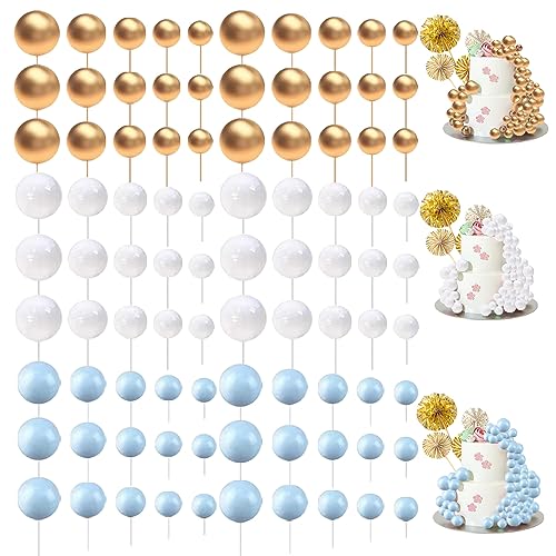 Tårtdekoration kulor, 108 stycken tårttillbehör, tårtdekorationer bollar födelsedag bröllop årsdag fest köksdekoration (guld/vit/blå/5 storlekar består)