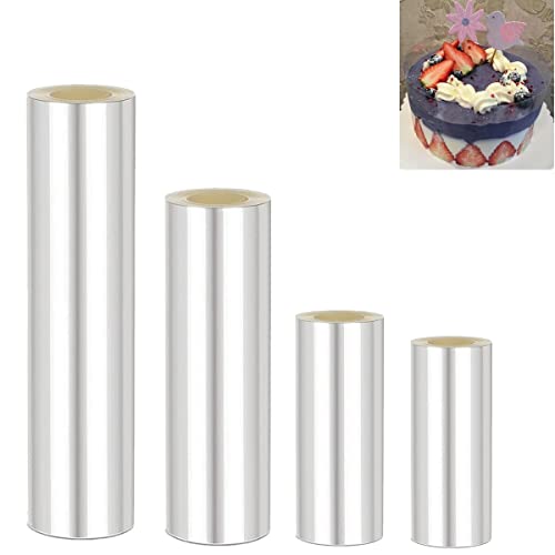 Kiswleon 4 band tårtkantfolie 20/15/10/8 cm x 10 m transparent tårtfolie, acetatfolie för tårtdekoration för choklad, mousse kakor, tårttillbehör, kaka