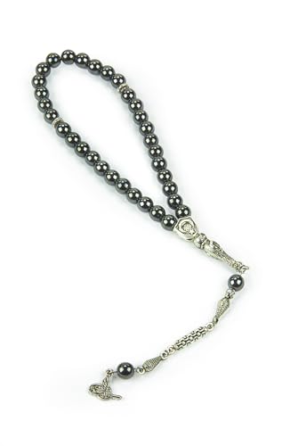 Perlin radband Tesbih Tasbih Tespih Misbaha Subha 33, muslimskt islamiskt armband böntillbehör hematitpärlor ädelsten pärlor kula 8 mm, Medium, Ädelsten Mässing Hematit