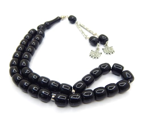 Radband Tesbih Tasbih Tespih Misbaha Subha 33, 28 cm, muslimsk islamisk radband, bönetillbehör, halvädelsten, onyx, svart pärlor, kula 8 mm
